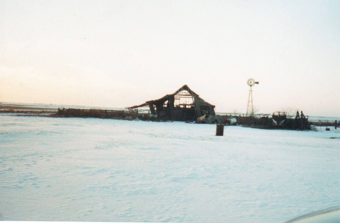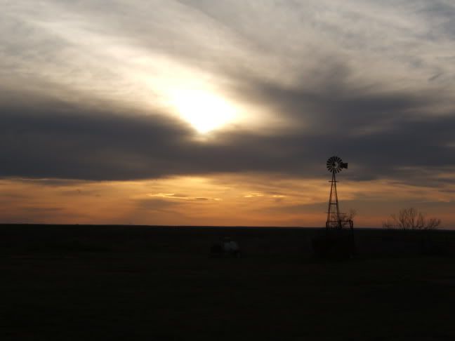 These next pictures are from my other grandparents' farm, my favorite place in the whole world. Some snowy ones, and a recent, regular one.. mostly sunsets. The snow is even more unusual there than it is near Amarillo. And the old barn isn't standing anymore, hasn't for several years. The recent one that is just a sunset is a picture of the same spot where the barn was, the windmill is still there.