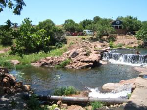 Some pictures I took today in Medicine Park, OK... The swimming hole is really pretty, so is the river... The buildings I thought were interesting... most made of cobblestone there... The Jail House is kind of crooked, but we were in a hurry and trying to find my grandparents and I was trying to cut out some cheap "Take your pictures in these frame things in front of the Jail House"... There was a town hall but everytime we went by it, there was some vehicle in the way of a decent shot... The last one was just this interesting Sphinx-like thing outside the Purple Parrot shop...